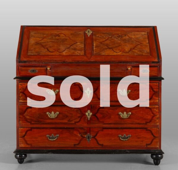 A Louis XIV thuja burr veneered bureau with serpentine front and sides. Genoa, early 18th century
