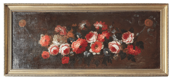 Garland of polychrome flowers, oil on canvas, Northern Italian School late 18th century.
