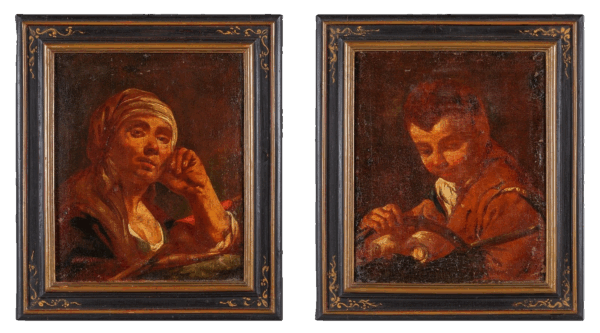 Portraits of common folk, Venetian School, 18th century, pair of oils.