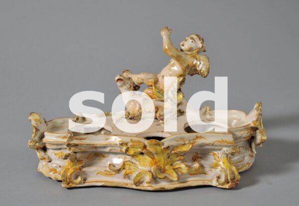 A barocchetto maiolica inkwell from Savona shaped as a small fountain, mid-18th century