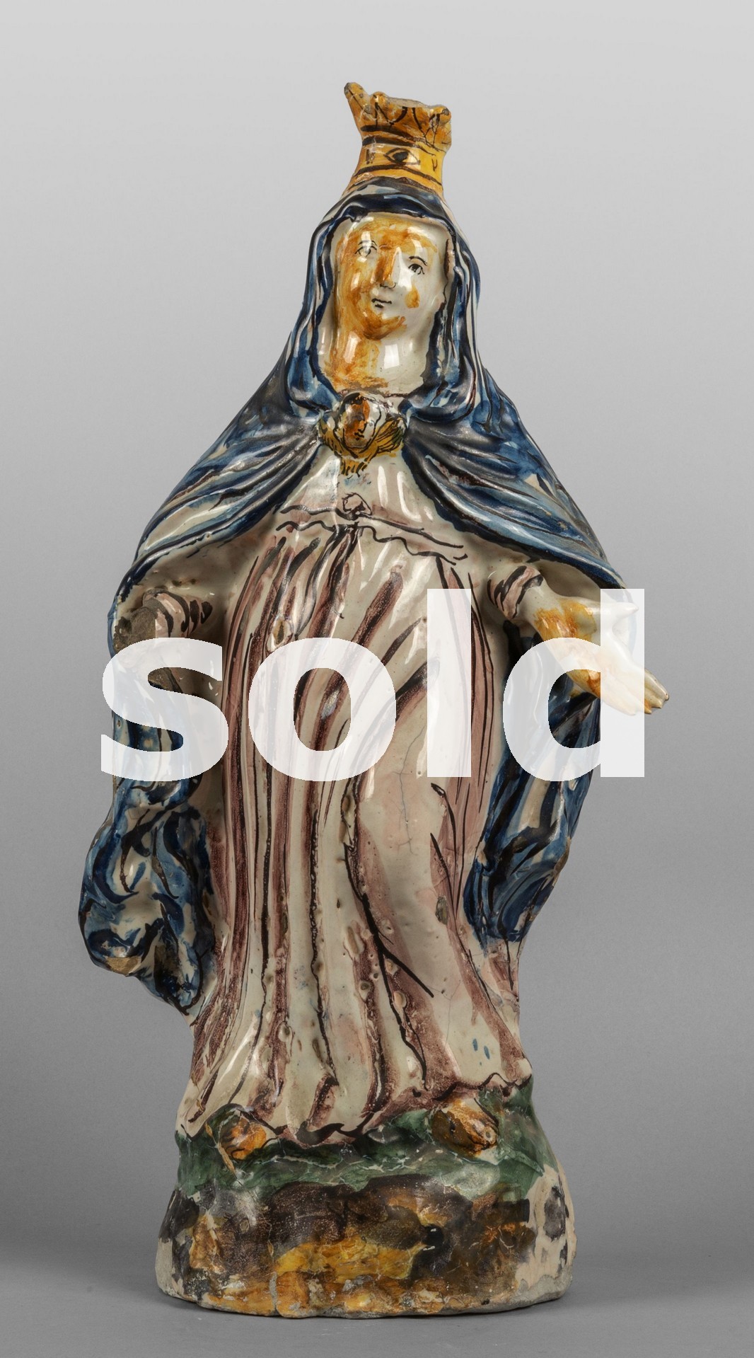 Guidobonian Madonna in polychrome maiolica, made for the 2nd Centenary of the Apparition in 1737. Signed with the Albisola “tocco” and an “F” followed by the full date (day, month, year). Private collection, Acqui… from Ceramiche omaggio a N.S. di Misericordia, Sabatelli Editore