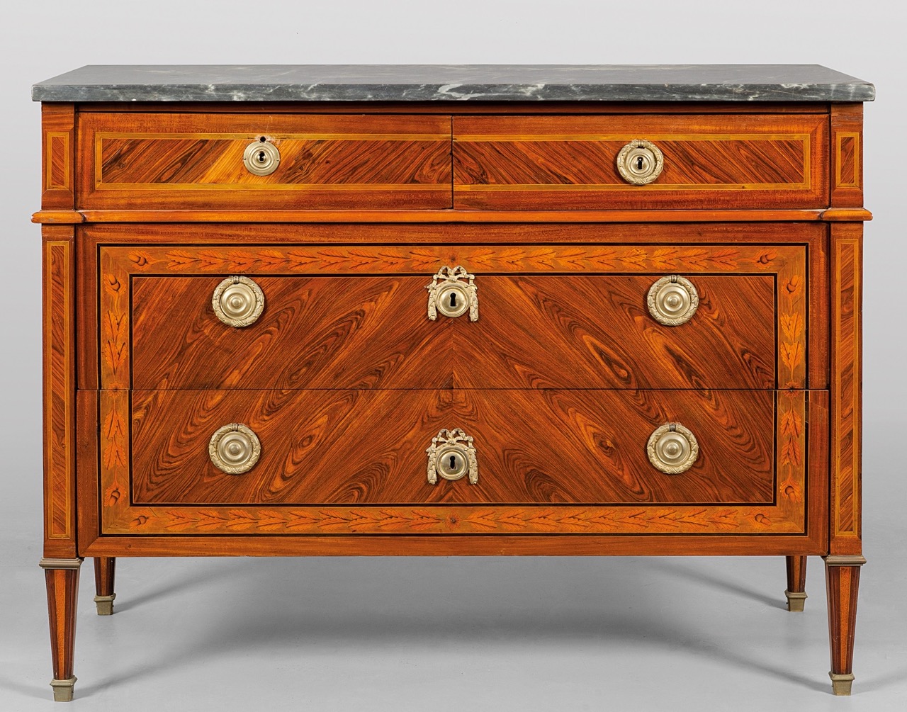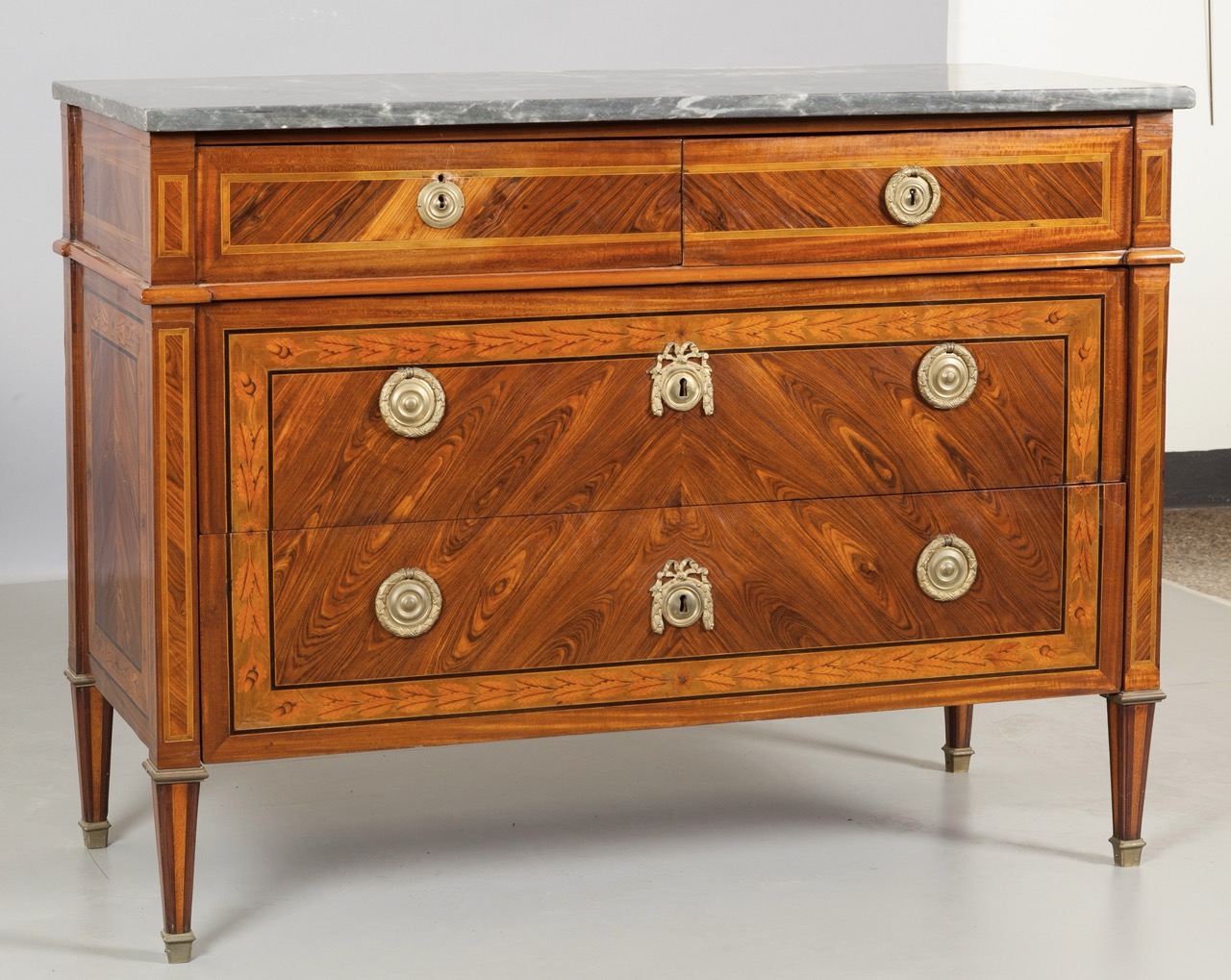 This elegant piece is featuring mirrored veneer decoration and topped with a Bardiglio marble top.
