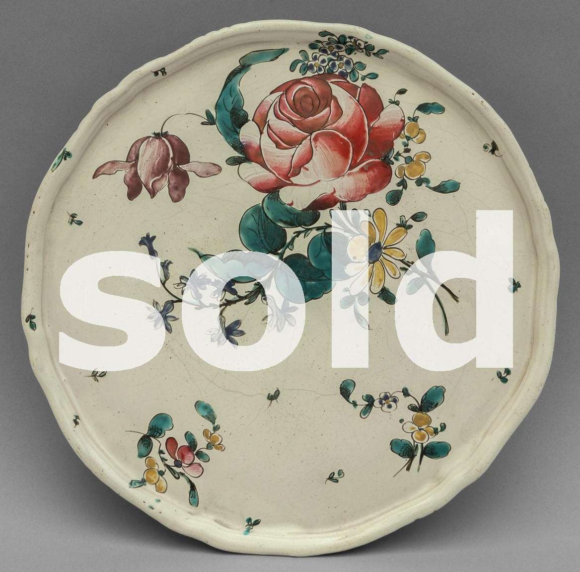 A ceramic stand decorated with rose motifs on a white ground, signed Jacques Boselly, Savona, 18th century