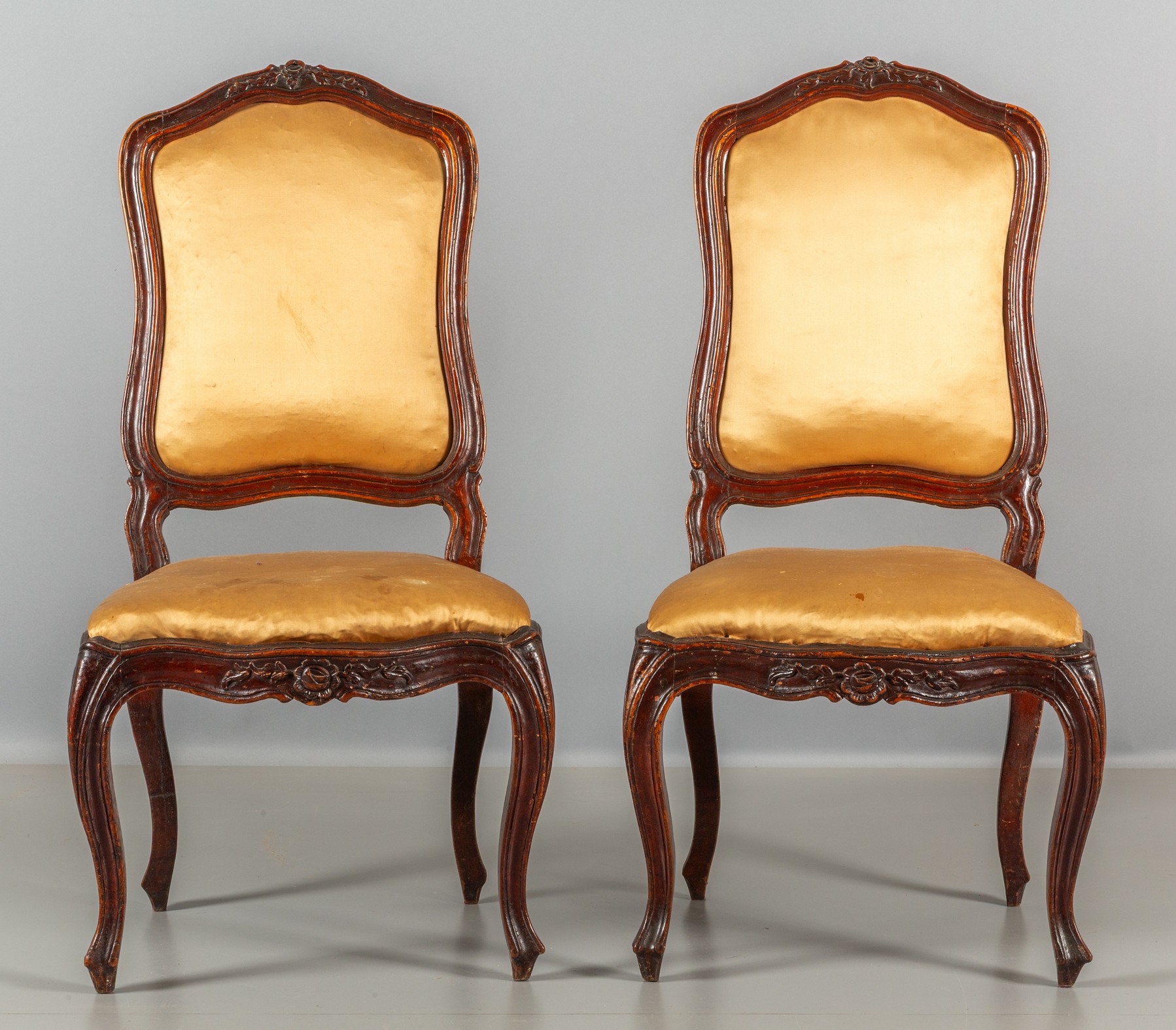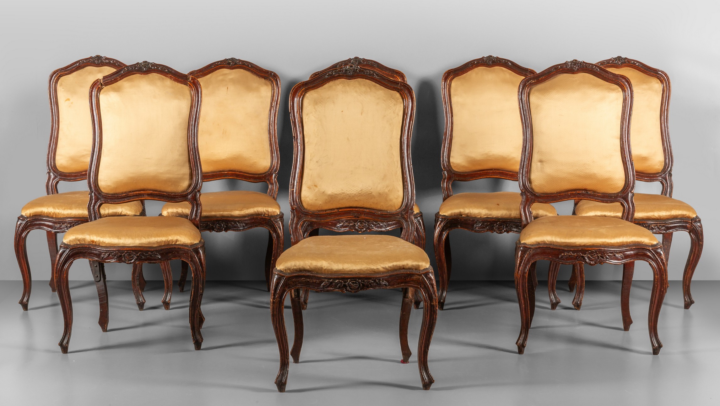 Eight finely carved Louis XV walnut chairs, Genoa, first half of the 18th century