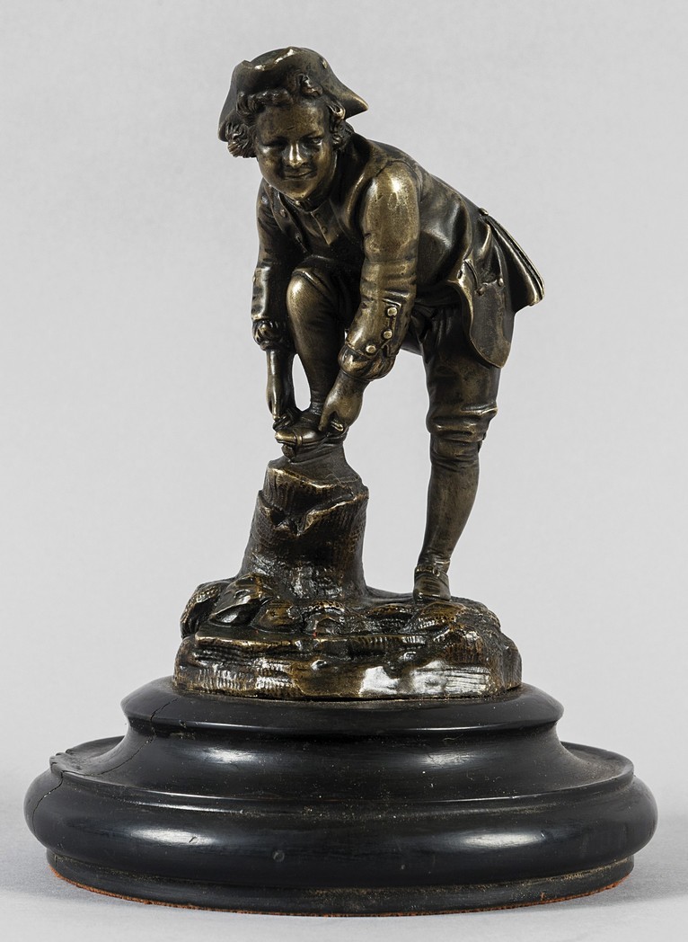 Paggio che stringe i lacci alle scarpe, bronzo a patina scura, secolo XIX
