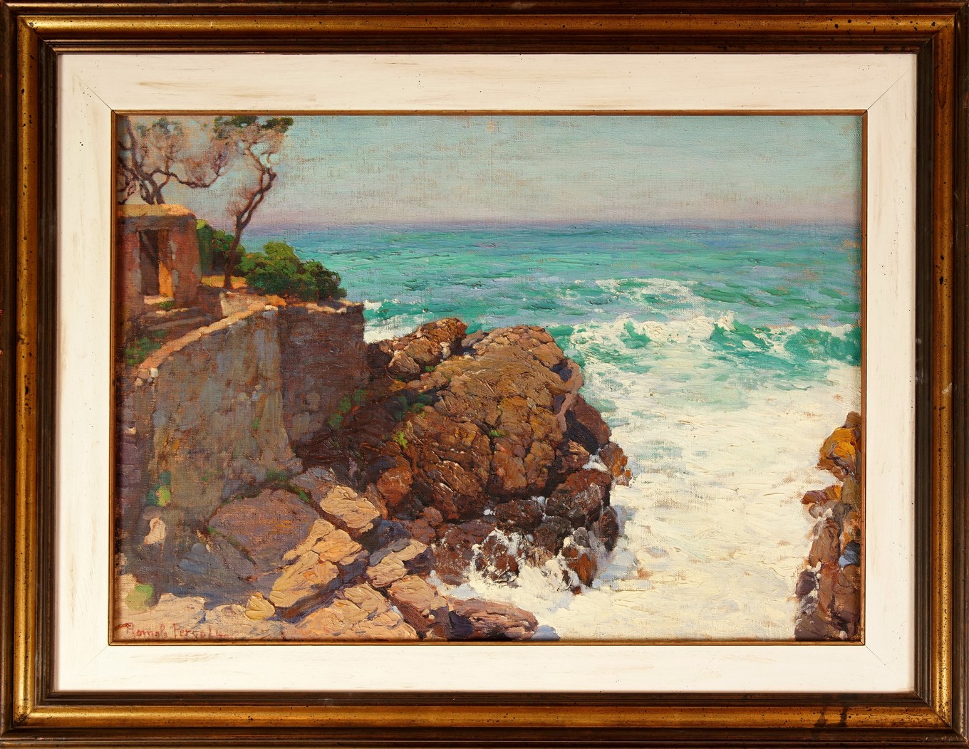 Romolo Pergola (Roma 1890 Trino VC 1962) Onde sugli scogli, olio su tela firmato in basso a sinistra