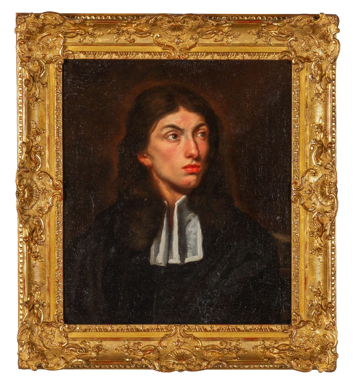 Questo raffinato ritratto, attribuito alla scuola fiamminga del XVII secolo, rappresenta un giovane uomo in abito formale, con cappello a tesa larga e colletto decorato. L’artista ha saputo catturare con maestria l’espressione intensa del soggetto, utilizzando il chiaroscuro per enfatizzare i tratti del viso e dell’abbigliamento. Lo sfondo scuro mette in risalto la figura, conferendo profondità e realismo all’immagine. Un esempio pregevole della ritrattistica fiamminga dell’epoca, che celebra la dignità e la presenza del soggetto ritratto.