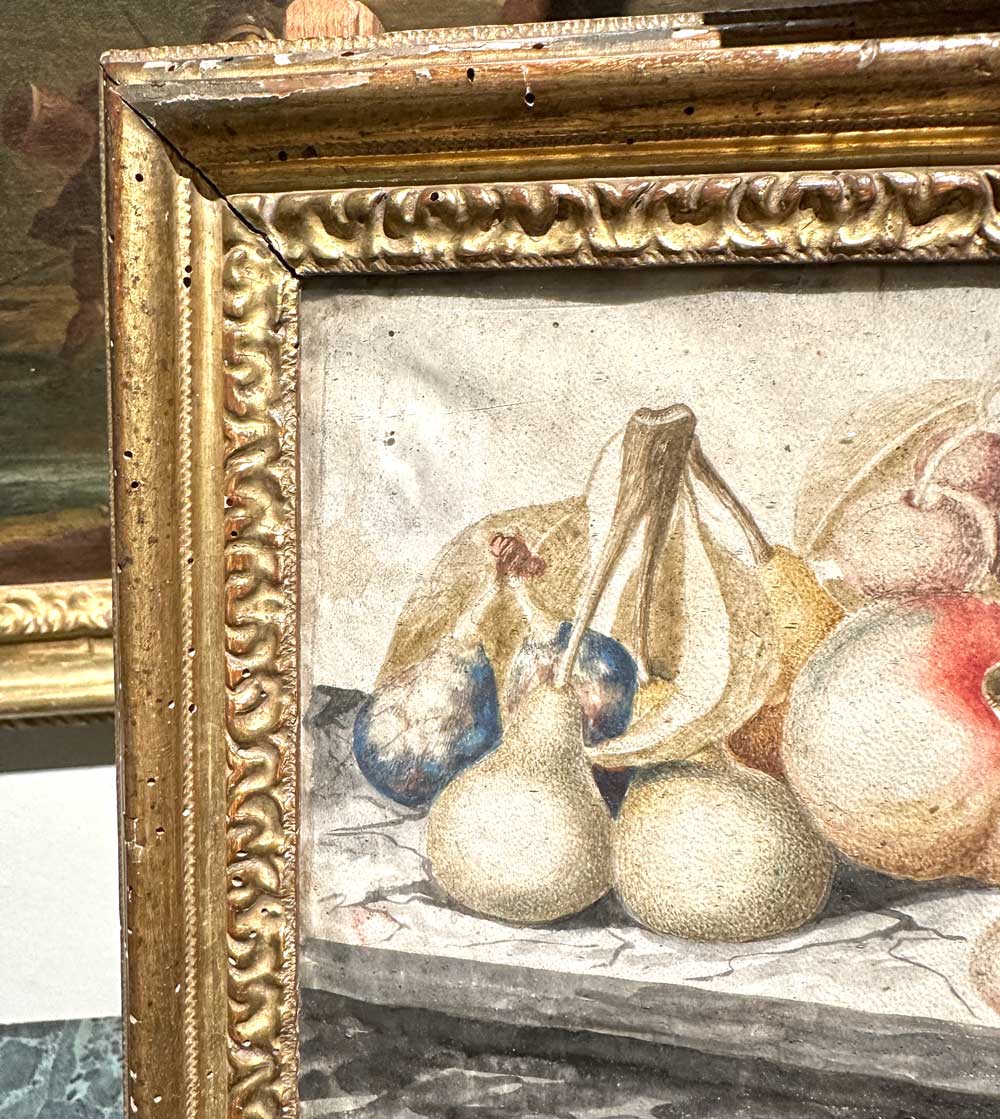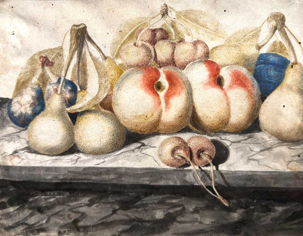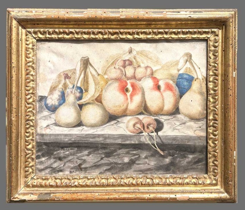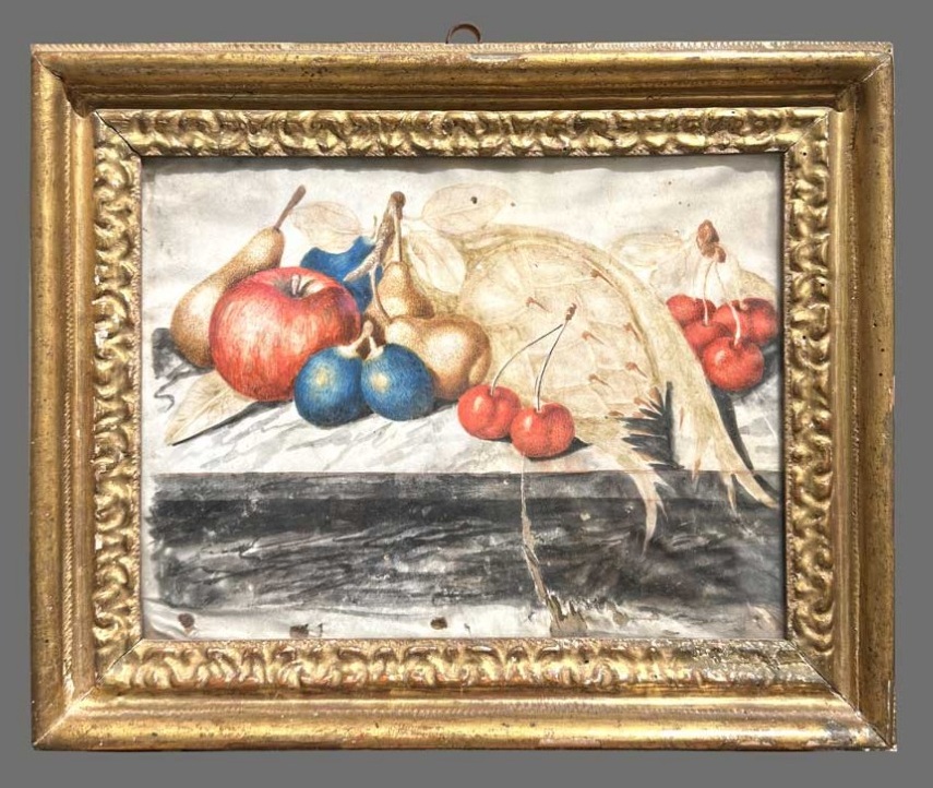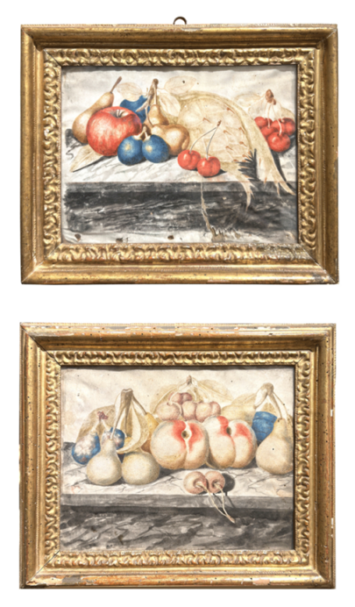 A pair of temperas on paper depicting still lifes with fruit, Piedmont 18th century, attributed to the circle of Monfort