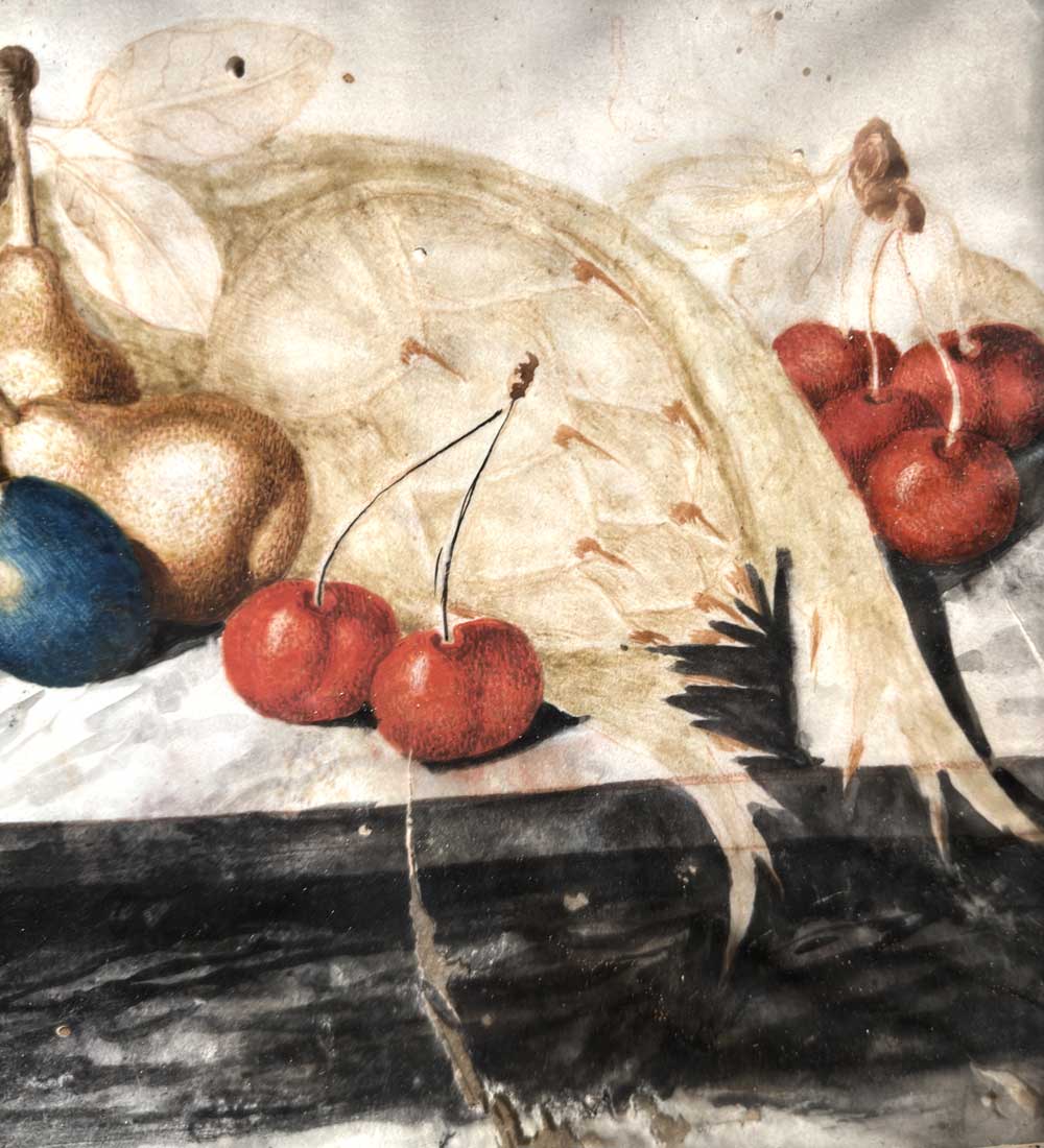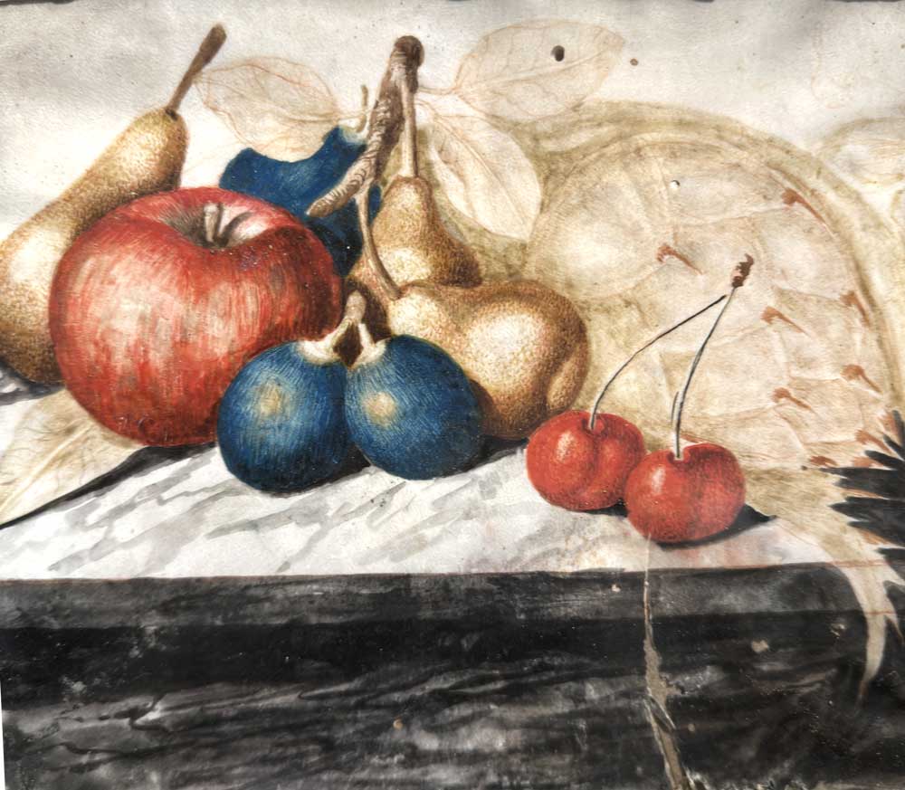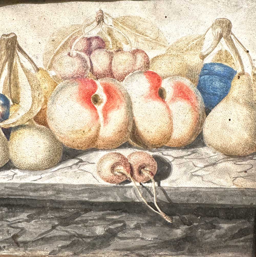 A pair of temperas on paper depicting still lifes with fruit, Piedmont 18th century, attributed to the circle of Monfort
