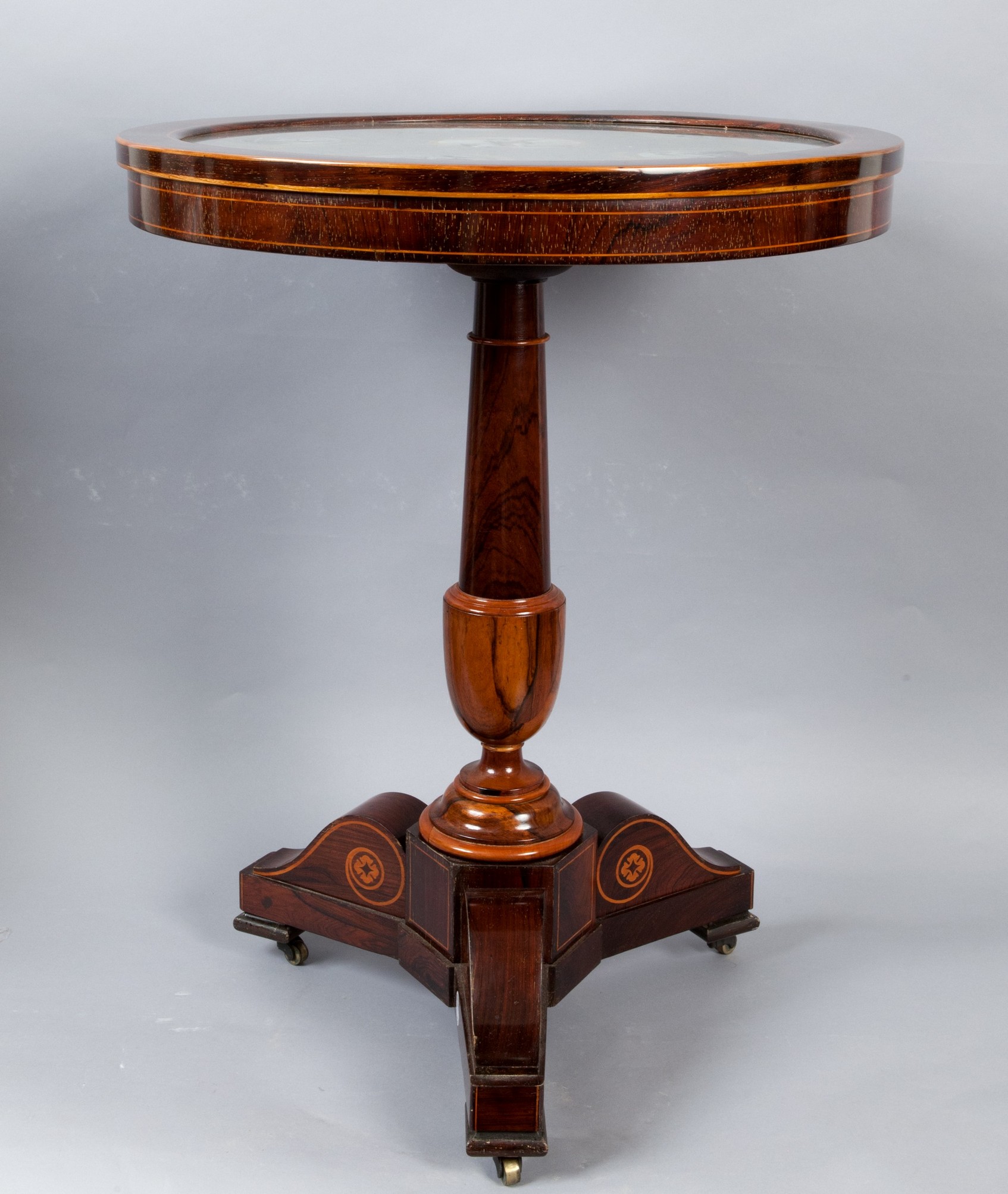 A round Carlo X table decorated on the top with fine gouaches, France, early 19th century
