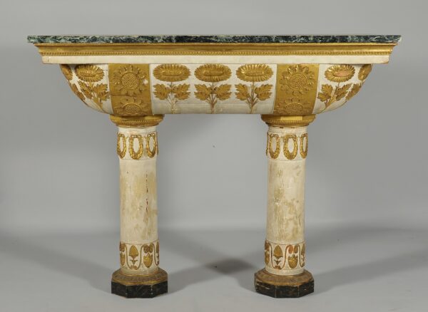 Consolle impero in legno finemente intagliato e dorato piano in marmo Verde delle Alpi, Genova inizi secolo XIX