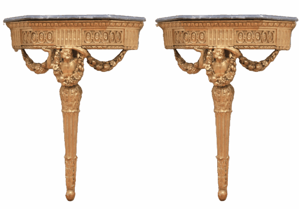 Coppia di consolle Luigi XVI finemente intagliate, dorate e policromate, Lombardia fine secolo XVIII