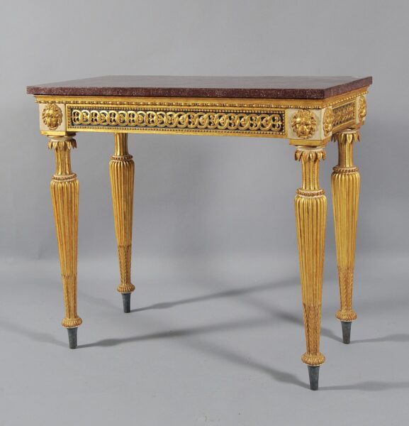Consolle Luigi XVI in legno intagliato e dorato, piano in marmo, Genova fine secolo XVIII
