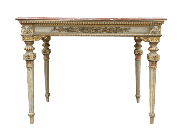 Consolle in legno policromo e dorato con piano sagomato in marmo Rosso Francia, Lombardia fine XVIII secolo