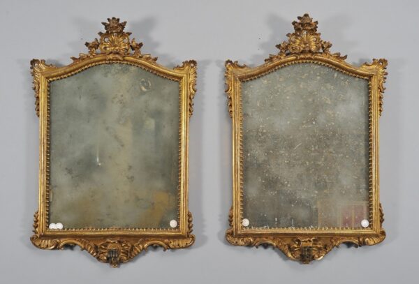 Coppia di specchiere Luigi XV in legno intagliato e dorato con controspecchi, due bracetti portaluce – Venezia secolo XVIII