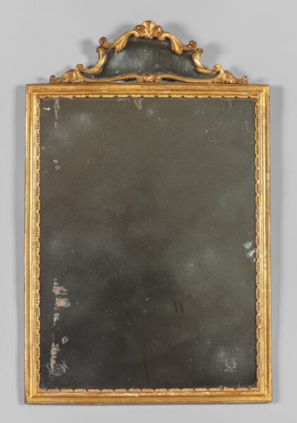 Specchiera Luigi XV in legno, cimasa in legno finemente intagliato e dorato, Venezia metà secolo XVIII