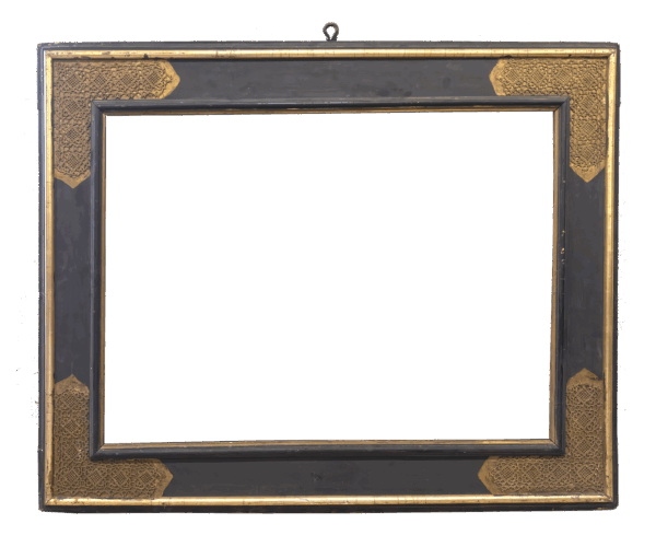 Cornice ebanizzata con angoli dorati a decoro punzonato, Italia XIX secolo