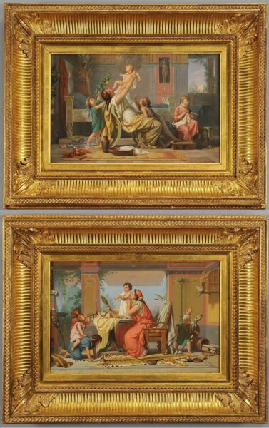 Félix Fossey (Parigi 1826 1899), Scene Pompeiane, coppia di oli firmati in basso in cornici dorate originali