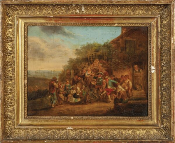 Alla salute! scuola fiamminga secolo XVIII, olio su tela