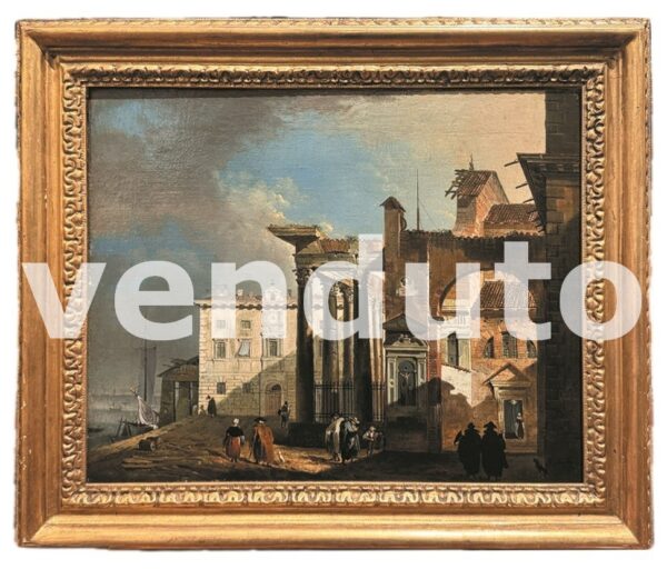 Paesaggi animati con figure, coppia di oli, scuola veneta secolo XVIII
