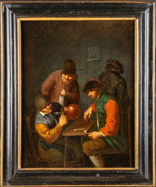 All’Osteria, scuola fiamminga secolo XVIII olio su tavola