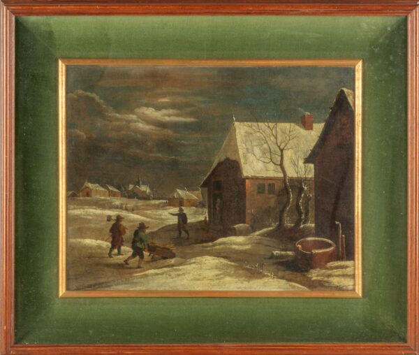 Paesaggio invernale, olio su tela, scuola fiamminga inizi secolo XVIII