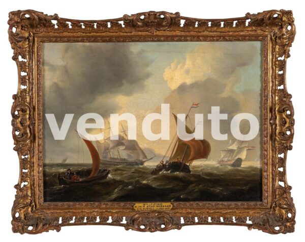 Charles Martin Powell (Chichester 1775 London 1824) Shipping in a stiff breeze, olio su tela