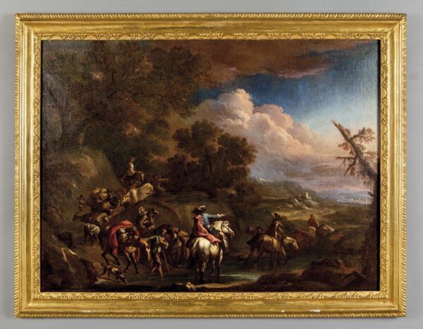 Christian Reder detto Monsù Leonardo (Lipsia 1656 Roma 1729) Il guado, olio su tela