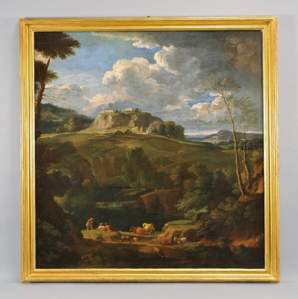 Paesaggio con pastori e armenti, olio su tela, scuola genovese secolo XVII