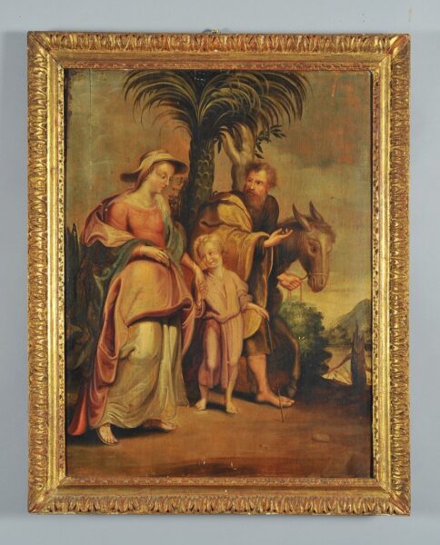 Riposo durante la fuga in Egitto, olio su tavola palchettata, Scuola veneta secolo XVIII