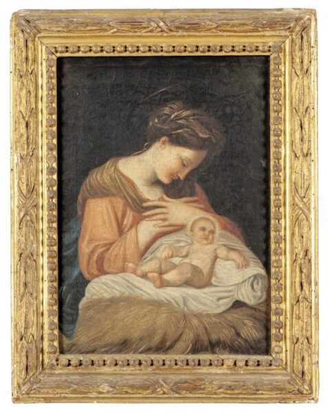 Adorazione della Madonna con Bambino, olio, scuola italiana secolo XVIII