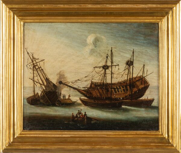 La calafatura del galeone, Agostino Tassi (Ponzano Romano 1580 Roma 1644) (attribuito) olio su tela