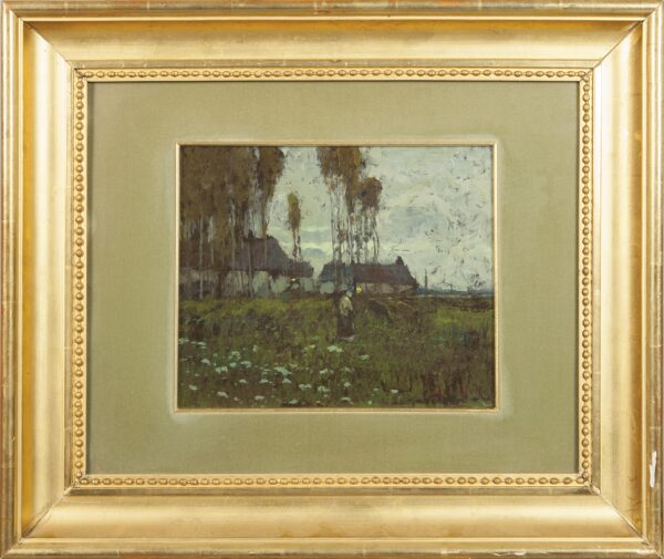 Cesare Ciani (Firenze 1854 1925) Casolari nel vento, olio su tavoletta
