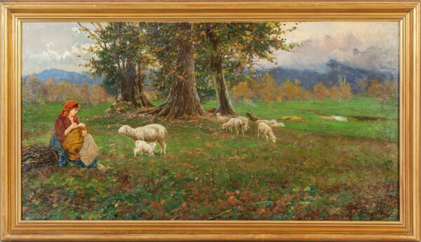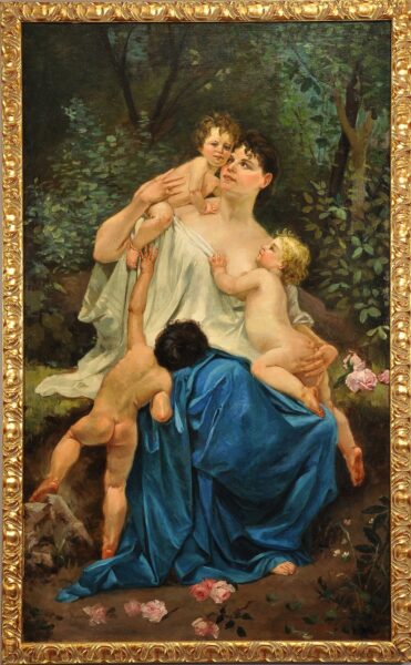 Antonio Varni (Genova 1841 1908) Amore per il Creato, olio su tela firmato e datato 1884 in basso a sinistra