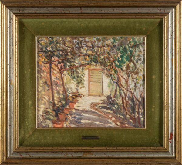 Angelo Balbi (Genova 1872 1939) Il pergolato, olio su cartoncino