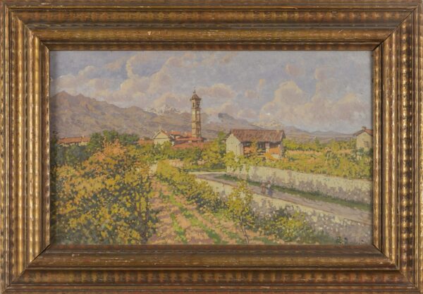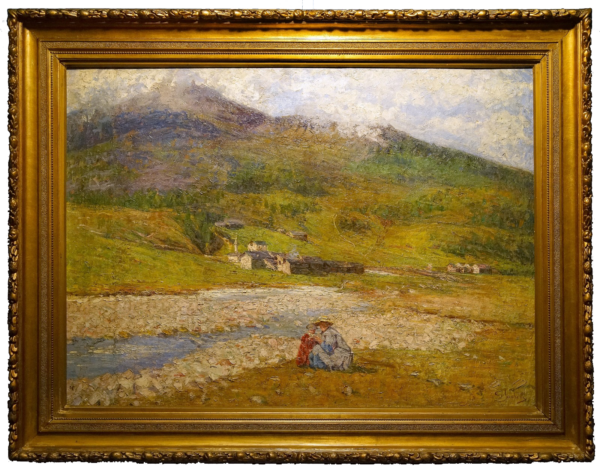 Giuseppe Sacheri (Genova 1863 Pianfei CN 1950) Primavera in Valle d’Aosta, olio su tela firmato in basso a destra