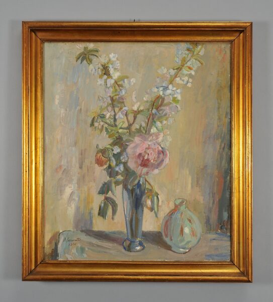 Oscar Saccorotti (Roma 1898 Recco GE 1986) Natura morta con vaso, olio su tela firmato e datato 1930 in basso a sinistra