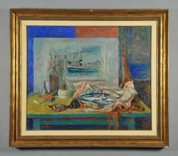 Rambaldi Emanuele (Pieve di Teco IM 1903 Savona 1968) Natura morta, olio su tela firmato in basso a sinistra