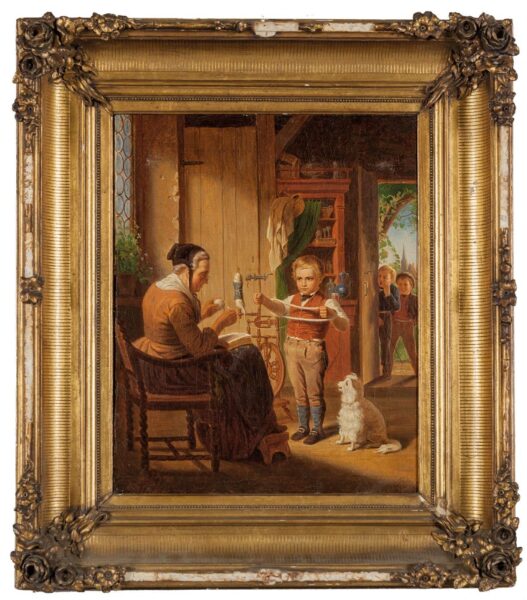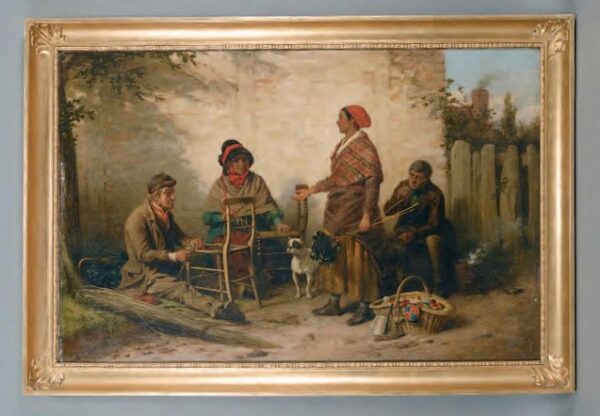W. Bromley (scuola inglese secolo XIX) L’impagliatore di sedie, olio firmato e datato 18?9
