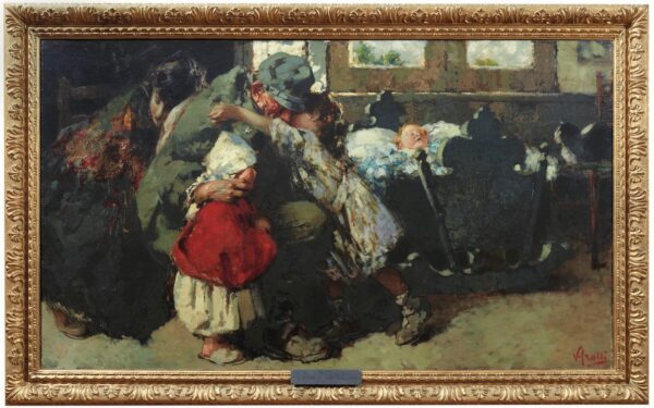 Antonio Varni (Genova 1841 1908) Ninna nanna, olio su tela, firmato in basso a sinistra e datato 1897