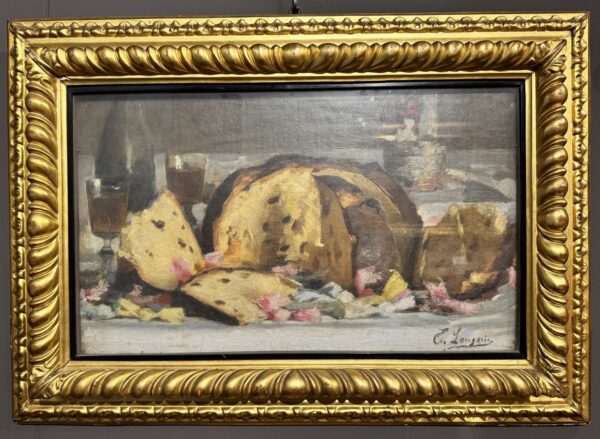 Emilio Longoni (Barlassina MB 1859 Milano 1932) Panettone, olio su tela firmato in basso a destra