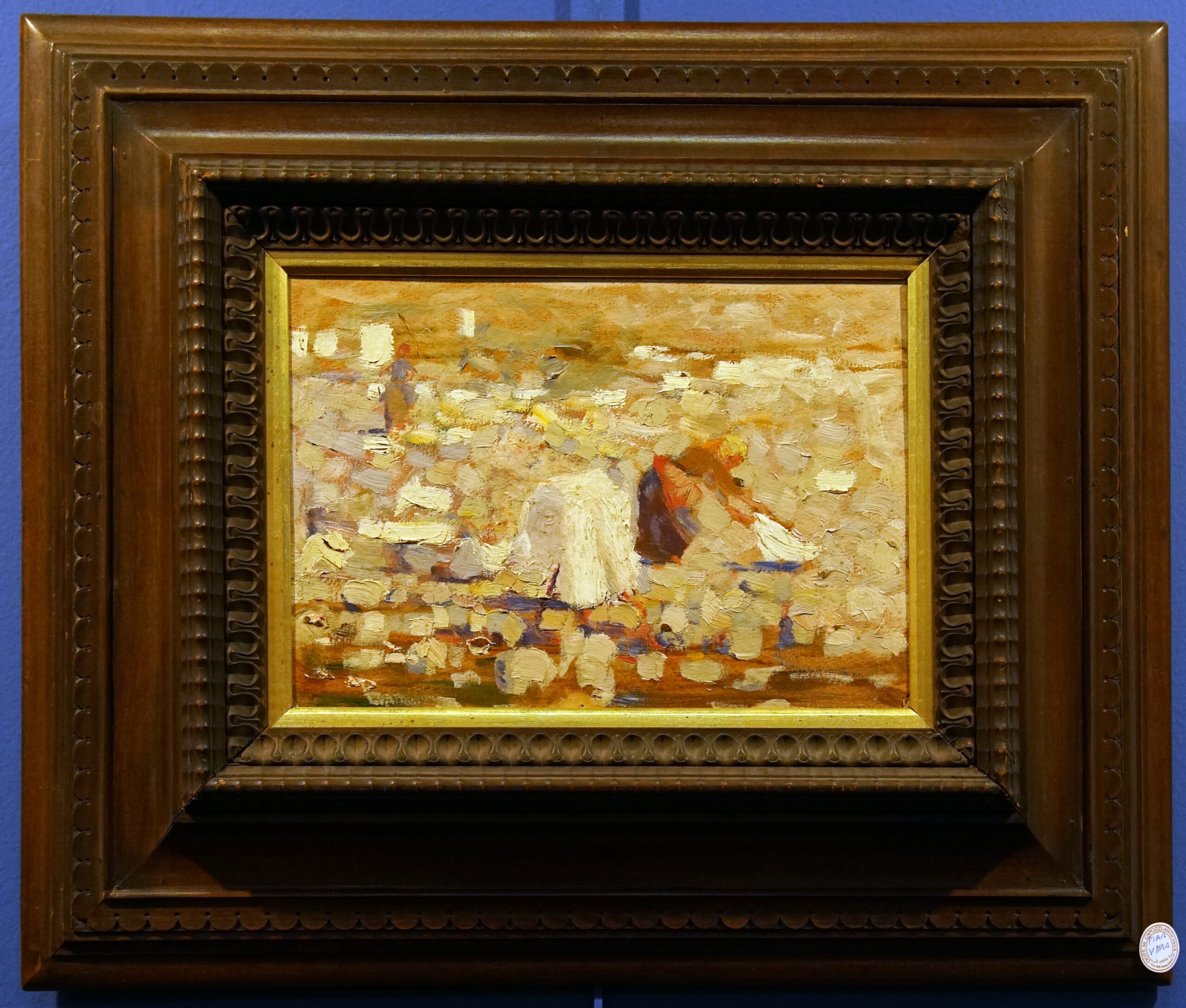 Dario Bardinero (Genova 1868 Scomparso nel 1909) Lavandaie, olio su cartoncino
