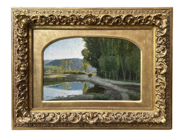 Ernesto Rayper (Genova 1840 Gameragna SV 1873) Paesaggio sulla Bormida, olio su tela, firmato in basso a destra, circa 1870