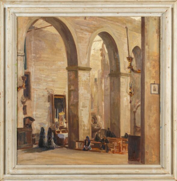 Eso Peluzzi (Savona 1894 Cuneo 1985) All’ospizio, Santuario di Savona, olio su tela firmato