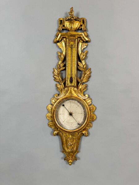 Barometro Luigi XVI in legno intagliato e dorato, Francia fine secolo XVIII