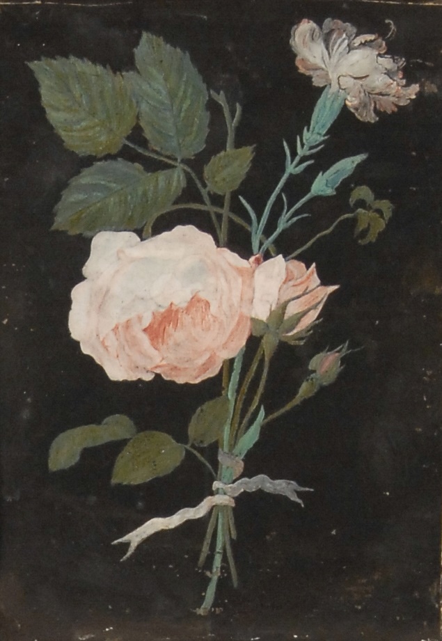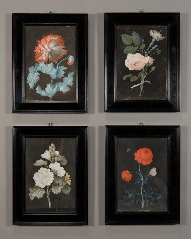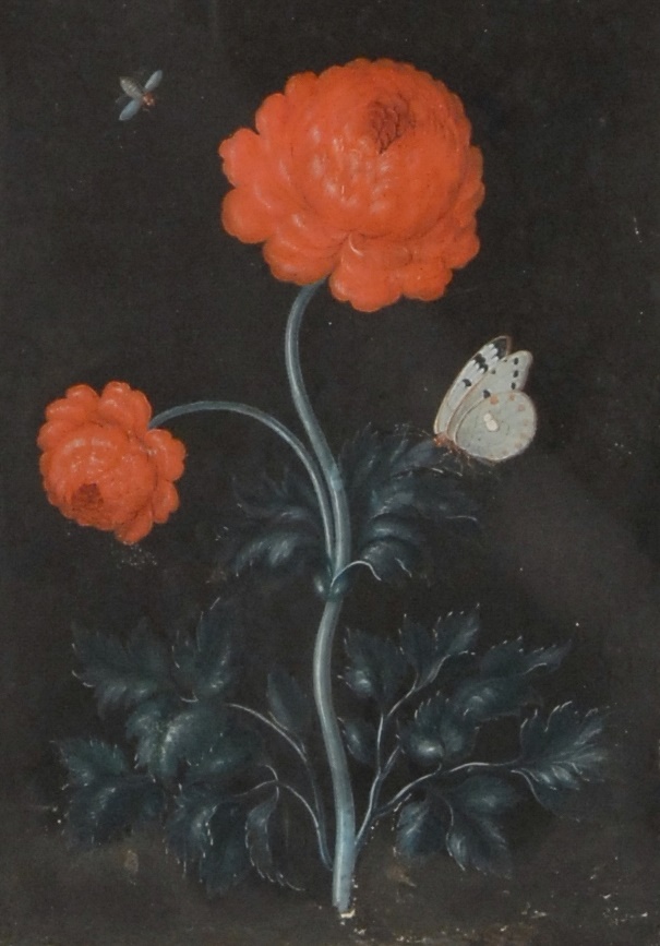 Christoph Ludwig Agricola (Regensburg 1667 1719) Fiori e farfalle, in vivace policromia su fondo nero