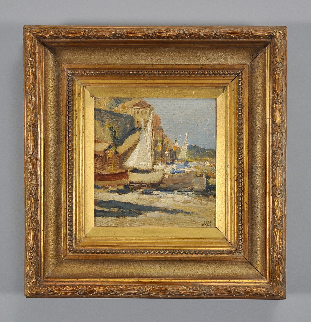 Angelo Balbi (Genova 1872-1939) Barche a riva, firmato in basso a destra e datato 1936