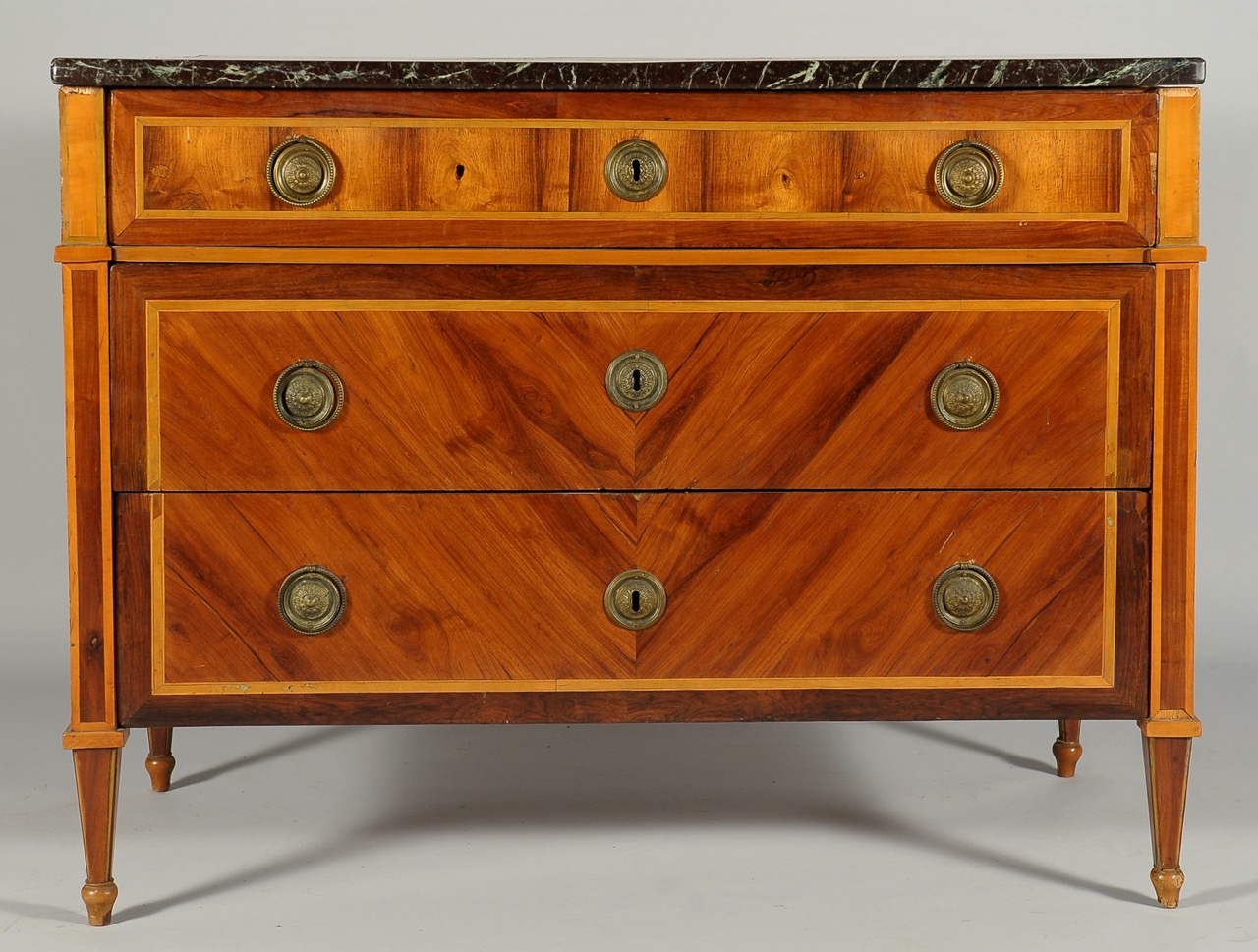 Lastronato in palissandro e filettato in legno tinto verde con controfilettature in bosso, piano in marmo Verde delle Alpi