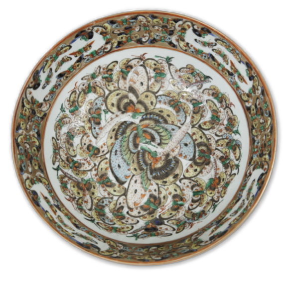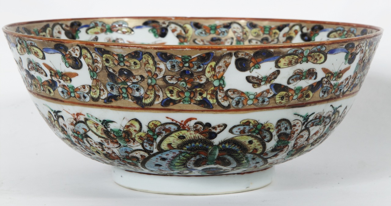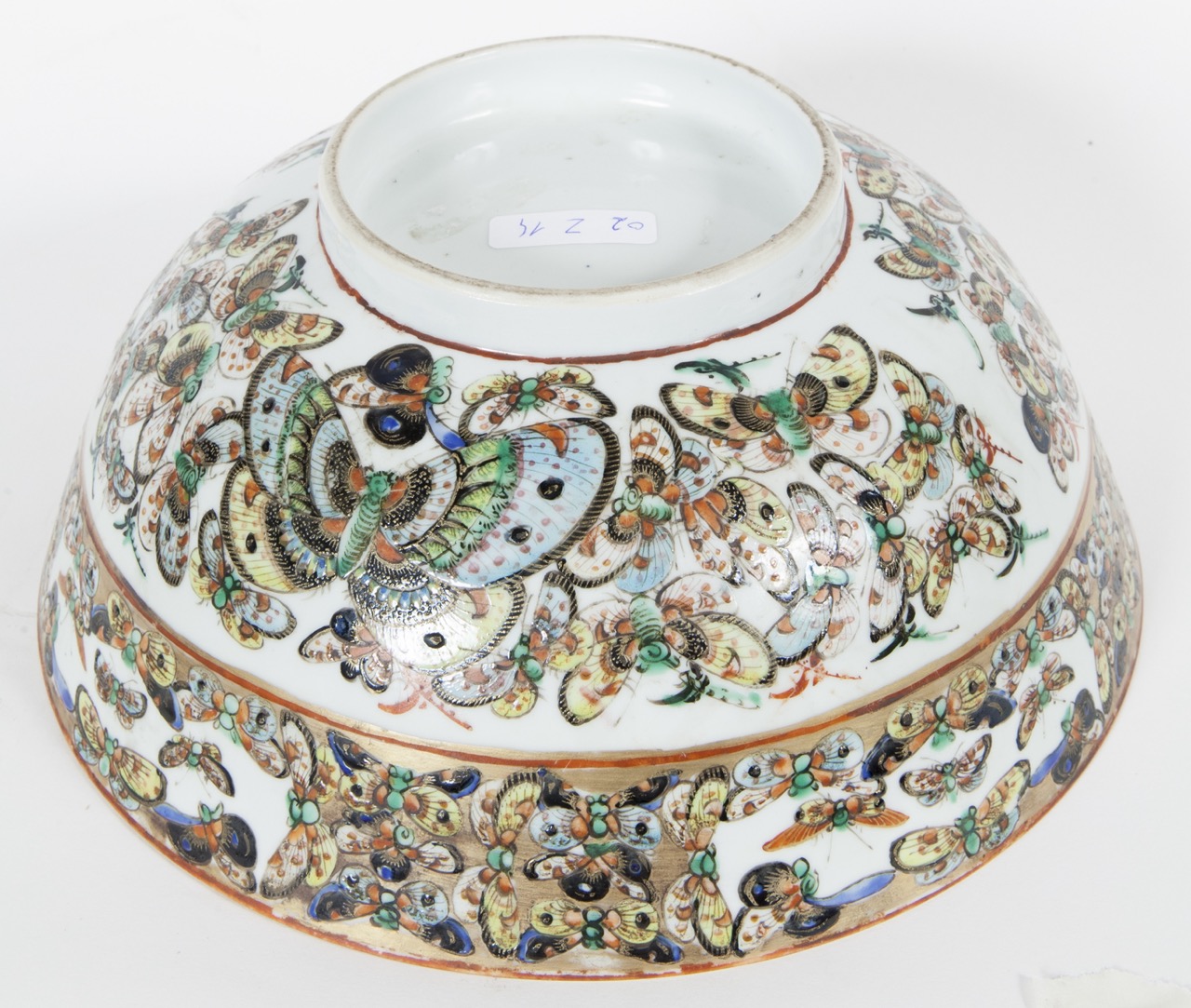 Coppa in porcellana decorata in policromia a motivo di farfalle, Cina secolo XIX
