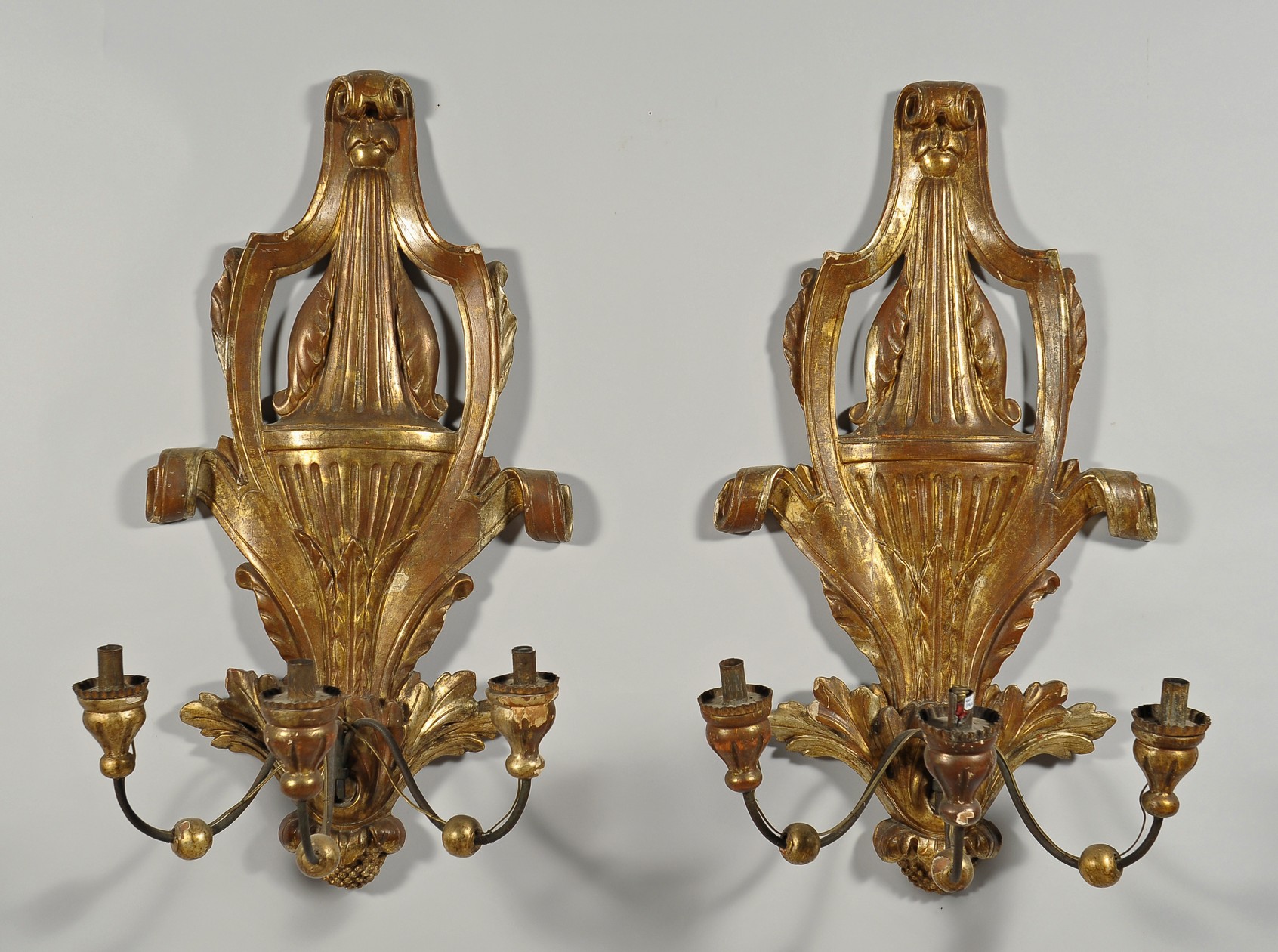 Due coppie di applique Luigi XVI a tre luci, Piemonte seconda metà secolo XVIII